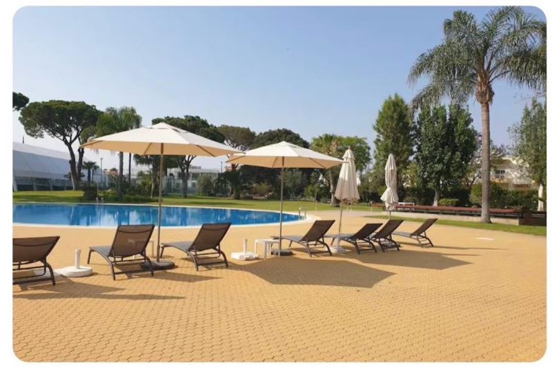 Beautiful modern apartment in condominium with large shared pool, garden and restaurant. ( 2km to beach, walking distance to Lidl supermarket, . 5km from Vale do Lobo and Quinta do lago.