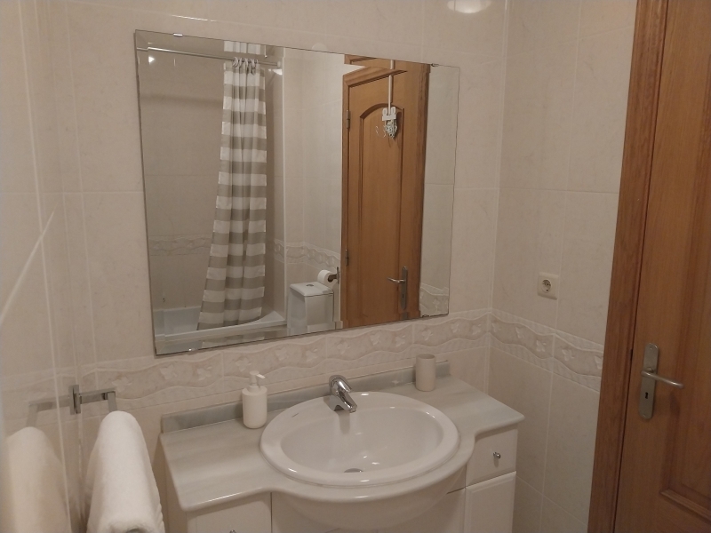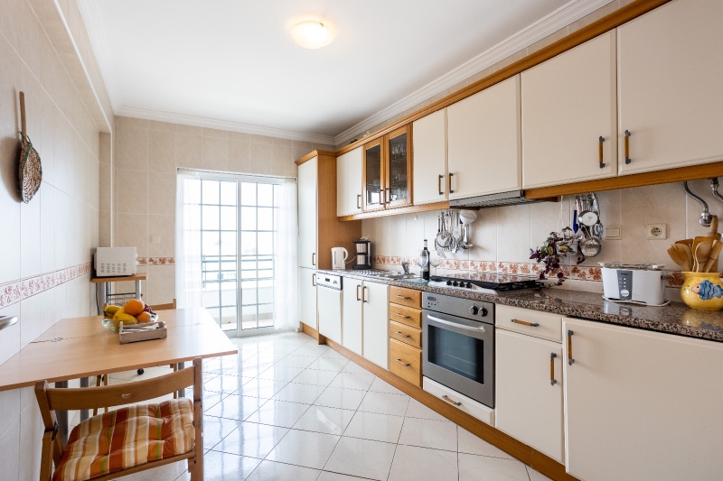 Large well equipped kitchen with dishwasher, washing machine, integrated fridge freezer, oven/hob/extractor, microwave, table/chairs and access to second balcony.