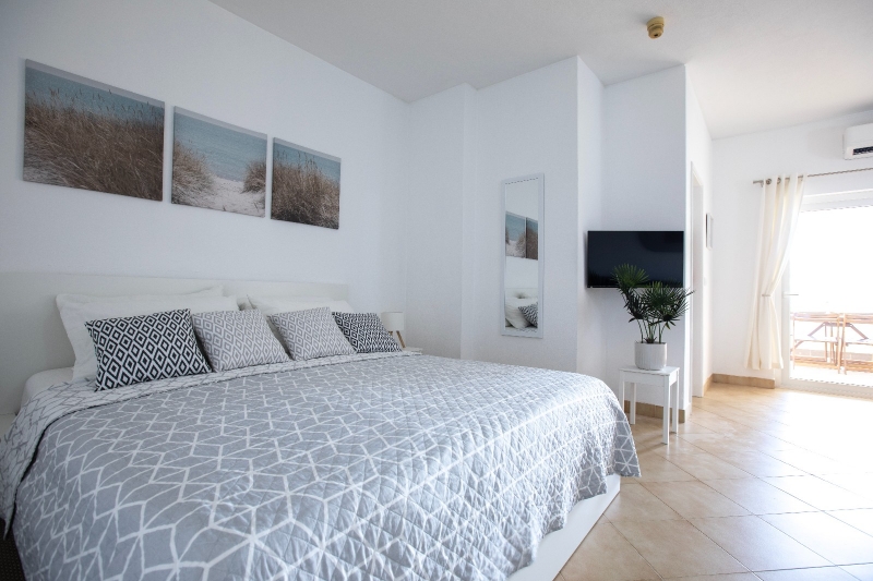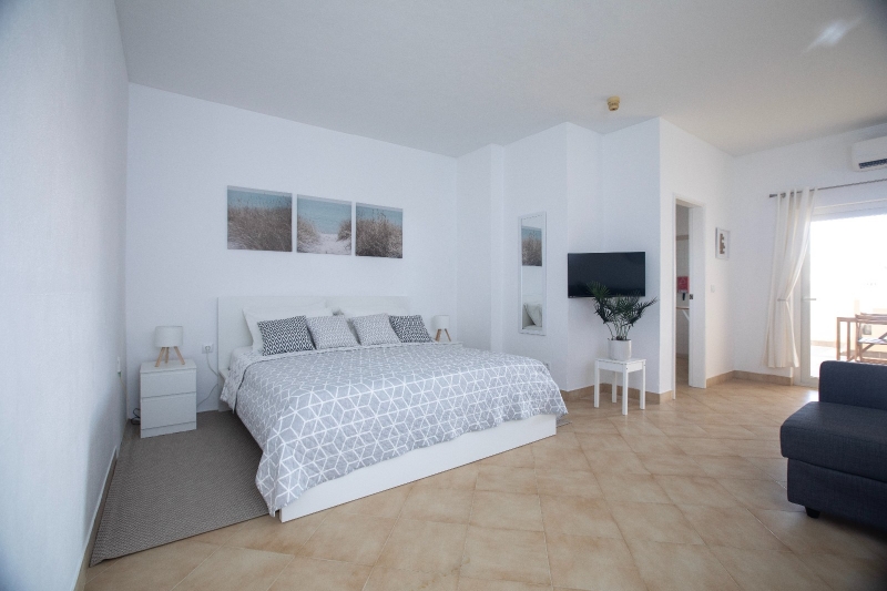 The fully equipped kitchen features everything you need for a seamless stay — including an electric hob, coffee machine, kettle, and microwave — all set within a chic, functional design. The brand-new bathroom is spotless and sophisticated, perfect for recharging after a day in the sun.