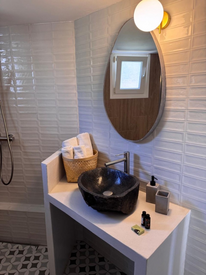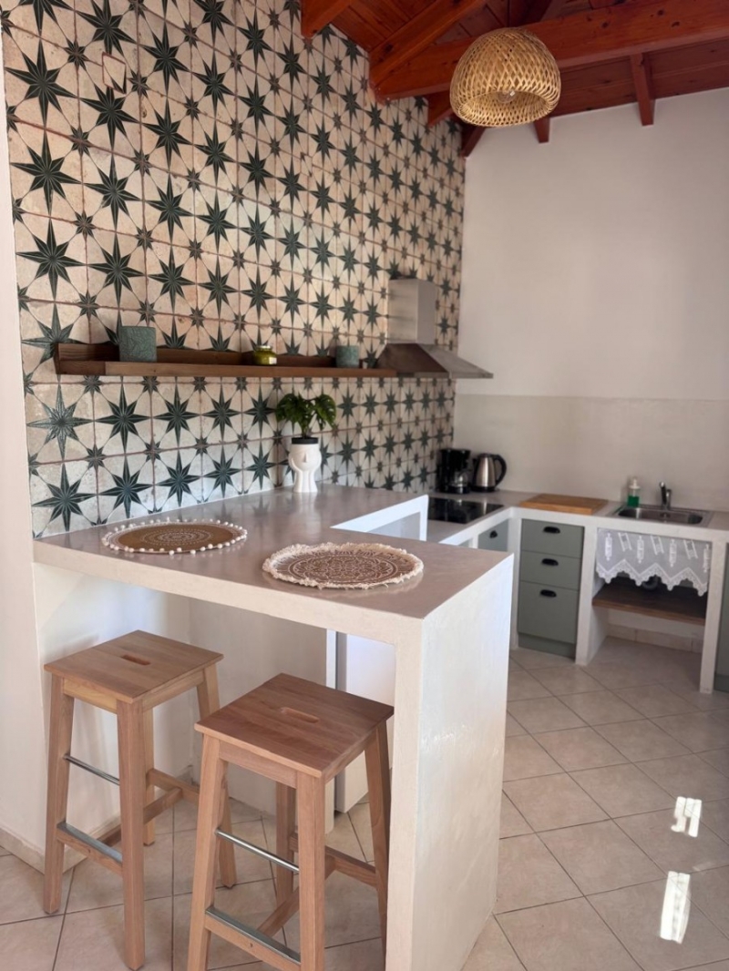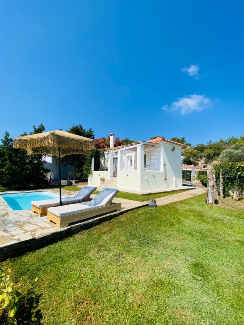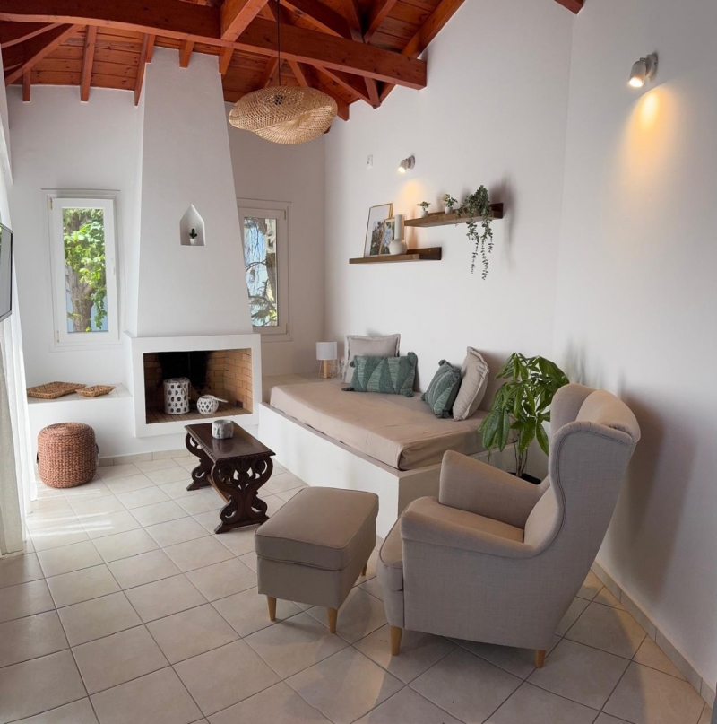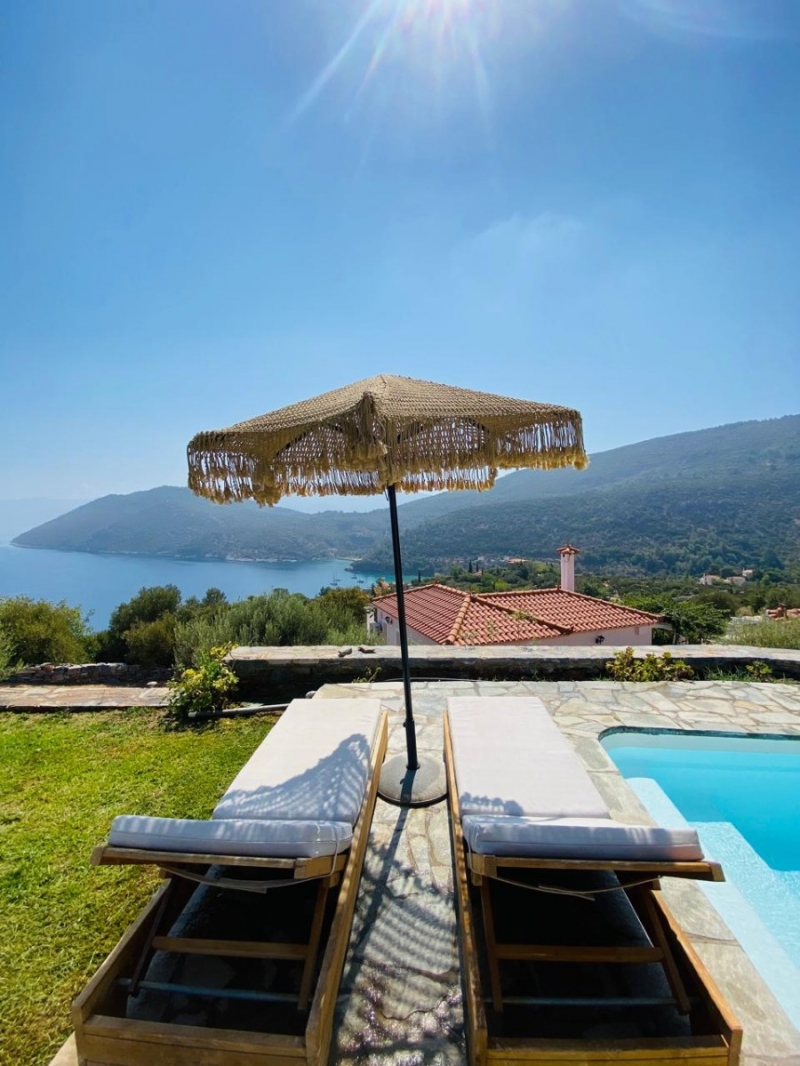 THE VILLASRelaxation, comfort, breath-taking view: these three nouns fully described Nafsika Villas. The complex is a collection of five villas (Helios, Rea, Gaia, Sappfo, Hera) found on a privileged position on the green hill side over the gulf of Kerveli, offering unobstructed and panoramic views to the sea.Each villa has its own character as far as the decoration and layout is concerned. One of them, Villa Helios, offers a private pool. Following principles of minimal decoration design with modern lines, all the villas are dressed with carefully selected colors and furniture that carry an essence of comfort inside. The villas offer private verandas and free access to the garden for endless summer indolence, all framed by the unique natural beauty of Kerveli.