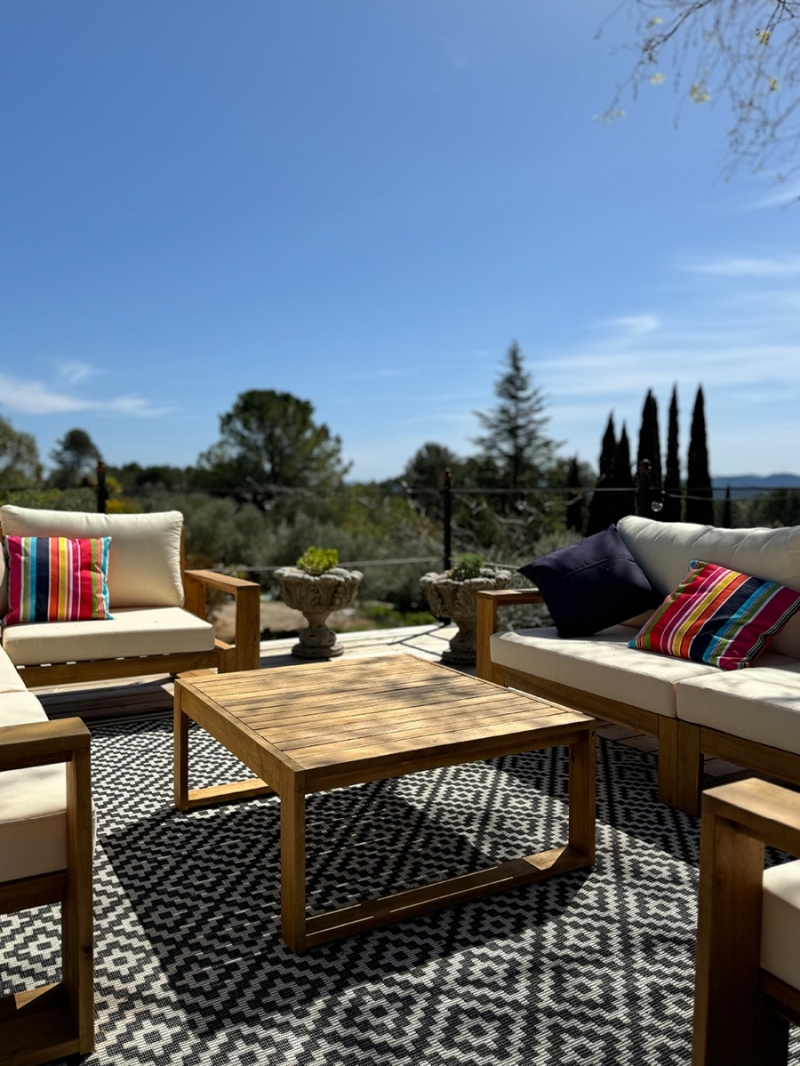 De ProvenceSuperb country house with every comfort and an unbelievable viewsPrivate swimming pool, boules pitch, table tennis and multiple terraces and dining spots. Full laundry room with large Fisher & Paykel fridge and freezer and a 140 bottle wine cooler.Parking for 4 cars.Snug room with library and large TV. Office with printer and super fast fibre broadband. Wifi throughout and air conditioning.10 to 12 guests, 6 bedrooms, 2 bathroomsOne of the finest properties in the Var. This charming country house has some of the best views around, while still being less than 2 km away from Cotignac. The spaceDe ProvenceIt is set on a plot of 5,000 m2 in terraced areas, with an olive grove and vineyard.2 minutes (by car) from the idyllic Provencal village of Cotignac (weekly market all year round, flea markets, concerts and open-air film festival during the holiday seasons and 40 minutes from Lac Ste Croix and the Gorges du Verdon. Just over an hour from St. Tropez and the rest of the Riviera. The house offers a surface of more than 350m2 on several levels with very good size spaces. Inside spacesA beautiful double height very large sitting room with 2 doors directly onto the main dining terrace, with its beautiful 12 seater country table and outstanding views.A fully equipped kitchen with a Sage dual boiler espresso machine, magi mix, Kitchen Aid to name but a few.There is a relaxing library and sung area with its own terrace. Large screen TV and international TV channels.Off the snug is an office with it’s own private terrace, a desk, printer and super fast fibre internet (1600mbs).There are 6 bedrooms classically decorated and all with a mixture of queen and king beds.All rooms have hanging wardrobe and draw space as well as wifi.The exterior For your private use : boules pitch, large swimming pool, tennis table and 2.5 acres of garden. There are multiple terraces to relax, dine or stargaze;• Main covered dining terrace (off the sitting room) with a 12 seater table• Pool terrace with relaxing sofas• Star gazing terrace with a dining table and open skies above• Vineyard terrace which is perfect for sun downers• Snug terrace to relax and read• Office terrace to contemplate the next dig dealThere is a dedicate outdoor kitchen space with a Big Green Egg, Asado grill and a gas plancha. The swimming pool (with outstanding views), measures 10mx5m, and is located directly off the main dining terrace and house. With 8 exotic wood sun loungers and parasols, this is the ultimate place to spend the day. There is a pool CCTV and alarm system that allows the safety of the youngest. The pool can be heated on request. There is private drive and parking for upto 4 cars.A monitored CCTV system will ensure security.There is a baby cot, if required.