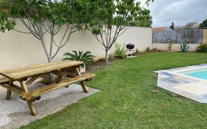 Rated Meublé de Tourisme 4*, this lovely home with private pool and garden is only 10 minutes' drive from beautiful sandy beaches in the charming village of Fleury d'Aude (where you'll find supermarket, bar, restaurants, boulanger, tabac, etc). South-facing patio, outdoor dining area under the fig trees. 3 double bedrooms, 2 bathrooms, sleeps up to 6 guests. Modern, fully-fitted and equipped kitchen (dishwasher, oven, hob, extractor fan, fridge/freezer, coffee machine) with lounge, dining room and utility room (washing machine, dryer, additional fridge). Situated between the historic towns of Béziers and Narbonne, there is something for everyone in the area!