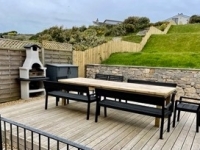 Built in 2008 this 3 story, 5 bedroomed luxury house sleeps 10 adults and 2 small children on a sofa bed. It has fantastic views over Trearddur Bay, the Llyn Peninsula and Snowdonia. It is 330 paces to the beach and with 4 bars / restaurants is the ideal retreat at any time of the year. Accommodation comprises of : 2nd floor double en-suite with veranda and views over the bay 2nd floor double 2nd floor twin Ground floor double en-suite and additional double sofa bed for two small children Ground floor twin 2nd floor family bathroom with over the bath shower 1st floor toilet A TV lounge on the 1st floor with access onto a veranda with patio furniture and views over the bay. A separate kitchen & TV snug on the 1st floor Ground floor games room including pool table, TV and Wii. Enclosed South West garden with patio, family size table and BBQ.