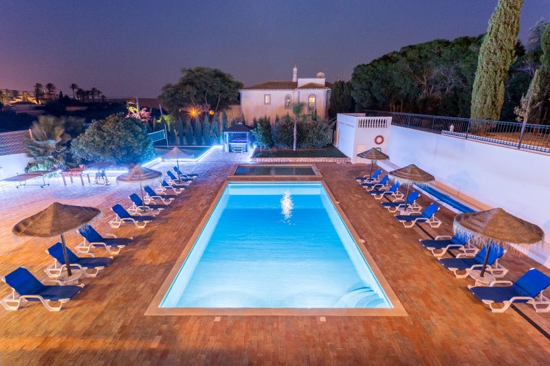 This huge property has style and a luxurious atmosphere, set in lovely gardens it offers comfort and peace, a place where famous stars have stayed.On the ground level there are three double bedrooms en suite each with its own direct access to terrace/pool. Also on the ground level with direct access to the terrace/pool is a large double bedroom en suite annex.On the first level the entrance hallway, with guest W.C, leads to a large sitting room, steps to dining room, kitchen and utility room. There are two double bedrooms en suite one with access to the large terrace, the other has its own balcony.On the top level there are four bedrooms en suite, one of the bedrooms has its own large balcony. The garden has a grassed area with fruit trees, a large swimming pool (heated optional), childrens pool, badminton/volley court, BBQ area with kitchen; fridge, dishwasher etc. and seating for 20 Next to the BBQ area beneath a pergola is the Jacuzzi, here up to six people can unwind taking in the relaxing surroundings. At the front of the villa ample private parking accessed through electrically controlled gates.Whether youre just wanting to take it easy and enjoy time with family and friends, or prefer a more energetic holiday, the Villa and local region has it all.Great beaches, scenic walks, good food and friendly locals. Sports include: golf, tennis, water sports, sailing, surfing, horse riding. Watch car and motorbike racing in the fabulous Autodromo Internacional, just a 20min drive.- Sleeps 20 - Air/fold beds for larger groups - extra - please enquire- 10 Double bedrooms en suite- 11 Bathrooms- Large sitting room with terrace- Large dinning room with terrace- Large kitchen- Utility room- Satellite TV/DVD/CD/Radio/Wii/Ipod docking station- WiFi & Internet socket in every bedroom - optional extra- BBQ area with seating for 20- BBQ kitchen; dishwasher/fridge-freezer - Badminton/volley court- Table tennis- Heated adult swimming pool - heating optional extra- Children swimming pool- Sun loungers & shades- Jacuzzi for 6 people- A/C - Heating- Sauna & Gym inc beach towels - optional extra- 20 minutes walk to the beach, cafes, shops and restaurants- 10 minutes walk to local supermarket- 5 minutes drive to Boavista Golf Club- 8 minutes drive to the town of Lagos- 5 minutes drive to Horse riding- 25 minutes to Lagos Zoo- 20 minutes drive to the Autodromo Internacional do Algarve, watch day/night; car and superbike racing. Grand Prix & Formula one test sessions.- 10 minutes drive to the fabulous Meia Praia beach which has 5km of golden sand, beach bar/restaurants.MANDATORY REQUIREMENTS- BREAKAGE DEPOSIT1000EUR PER BOOKINGPaid to the owner with a balance payment by Credit Card / Bank Transfer / Pay Pal or Cash on Arrival.The property owner/Management will take over full responsibility for holding and returning your Breakage Deposit and shall have the right to deduct from the Breakage Deposit charges for any damage/loss to the property or any item in it or on its premises that you or any member of your party causes.- MAIN TRAVELLER DETAILSA copy of valid passport- QUINTA OCEANE TERMS AND CONDITIONSQuinta Oceane Terms and Conditions must be signed prior to arrival.